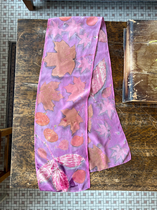 Eco Print Silk Scarf - Pink