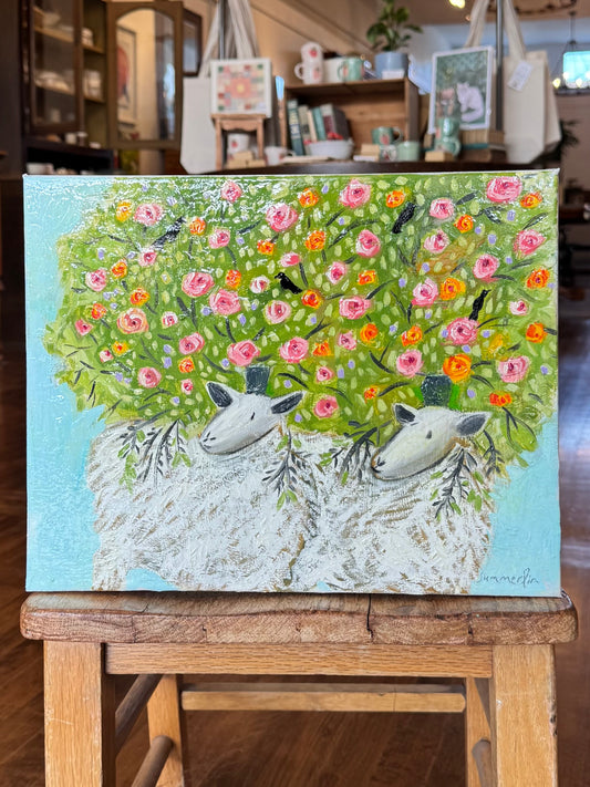 "Two Sheep with Pink and Red Yellow Roses" - Original Work