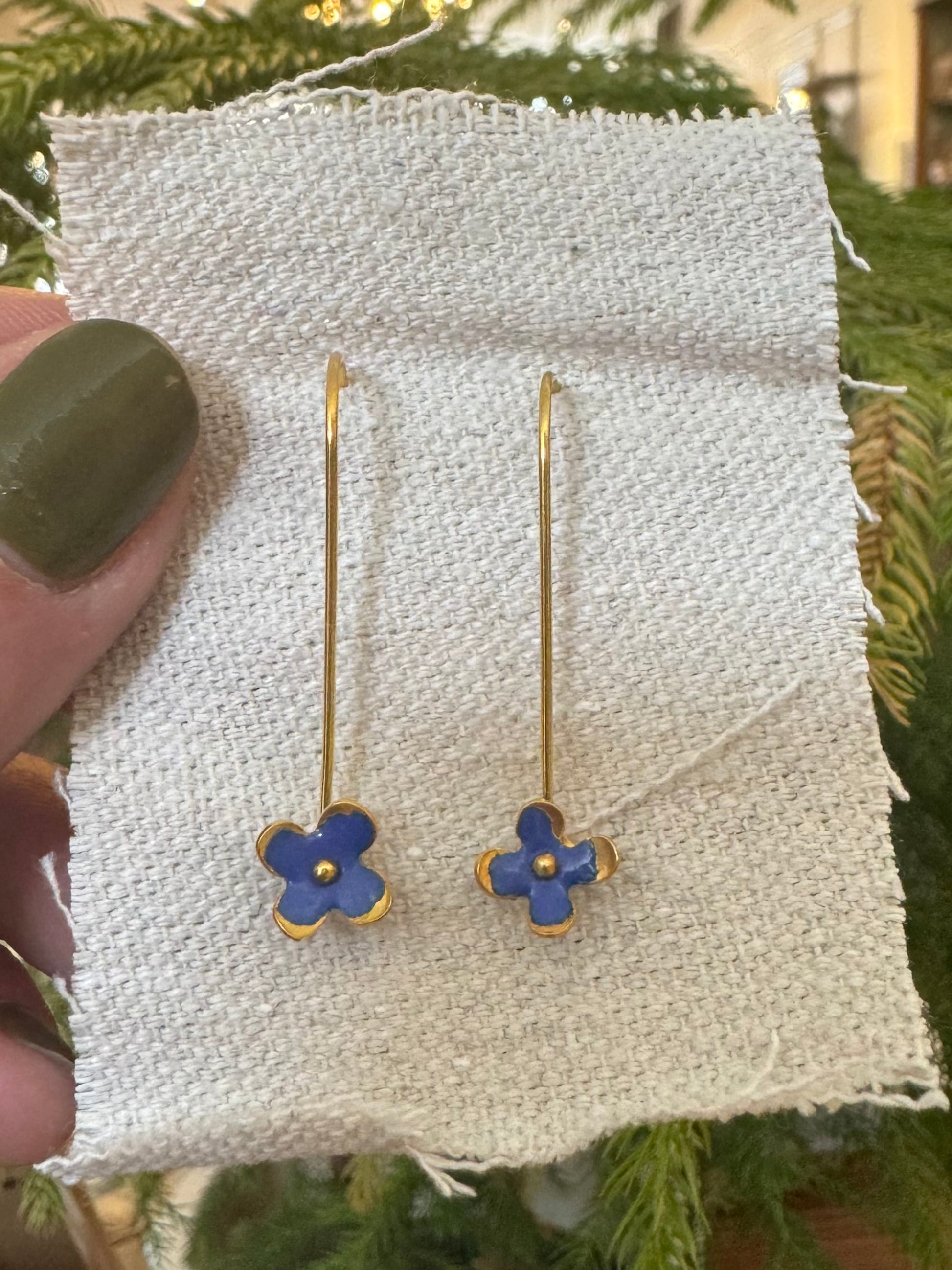 Enamel Flower Earrings - XS Cobalt