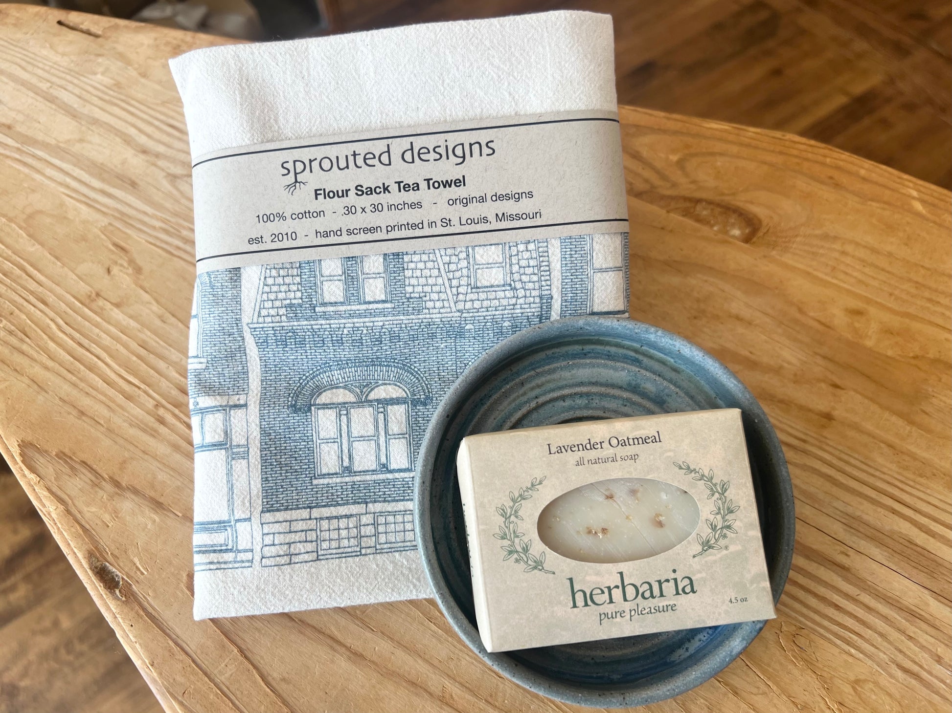 Shopkeeper's pick! The ceramic soap dish and handmade soap scent you receive is up to us!