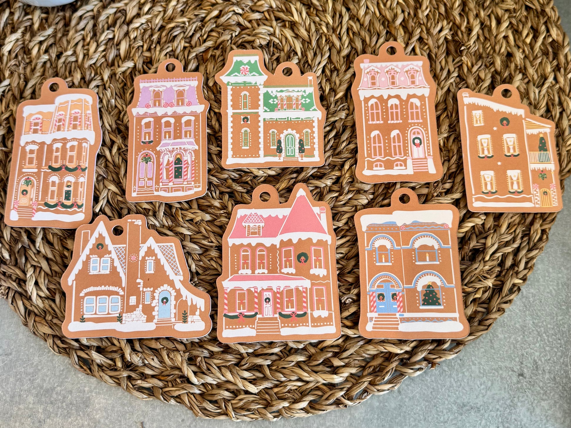 - Set of 8 different gingerbread gift tags
