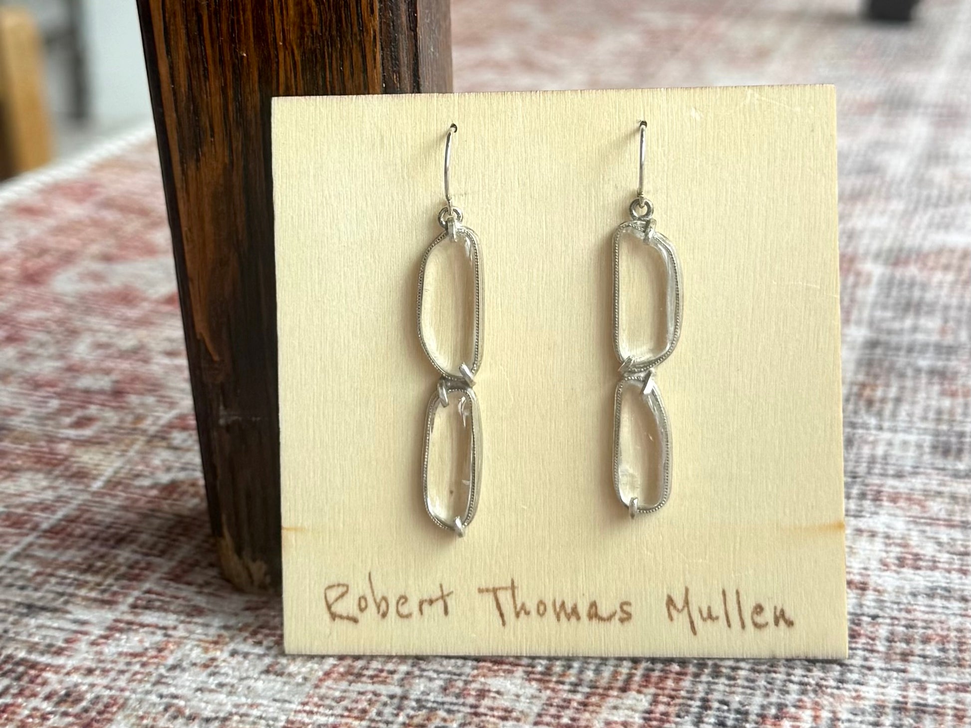 - Two polished rock crystals set in sterling silver
